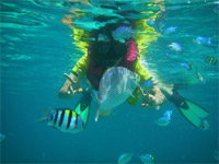 Swimming wear, beach towel and mat, sun screen lotion, cap, mosquito-repellent, camera and some cash