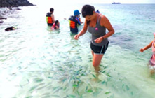 Jumping from the boat to the water: we stop to do snorkeling at the quiet bay of PP island - Monkey beach bay. We do sightseeing around to see every highlight of PP island - Loh Samah bay, Maya bay, Bi Leh bay and Viking cave.beach and every one can really get in touch with the beach film location.